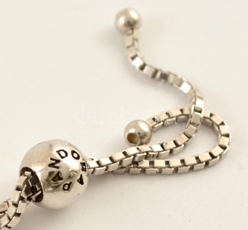 Ezüst(Ag) apró kövekkel kirakott karkötő, állítható hosszúság, Pandora jelzéssel, bruttó: 5,1 g