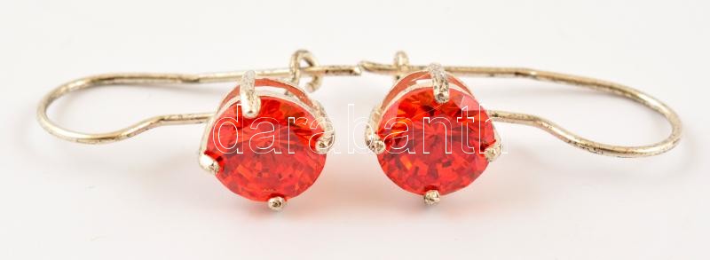 Ezüst(Ag) fülbevalópár tűzpiros kővel, jelzett, bruttó: 2,67 g