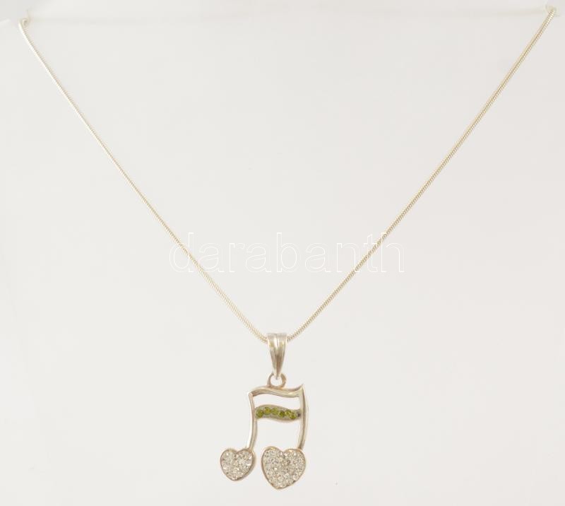 Ezüst(Ag) kígyó nyaklánc, kövekkel díszített hangjegyes függővel, jelzett, h: 55 cm, 3,2×2 cm, bruttó: 9,6 g