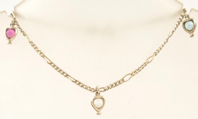 Ezüst(Ag) szívecskés karkötő, jelzett, h: 17 cm, bruttó: 2,9 g