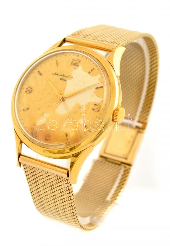 IWC Schaffhausen mechanikus férfi karóra. 18K arany tok és 14K arany ó... https://www.darabanth.com/en/359-Online-auction/359.0/Jewellery/Jewellery~2000022/IWC-Schaffhausen-mechanikus-ferfi-karora-18K-arany-tok-es-14K-arany-oralanc-Jelzett-Az-ora-~II2064824