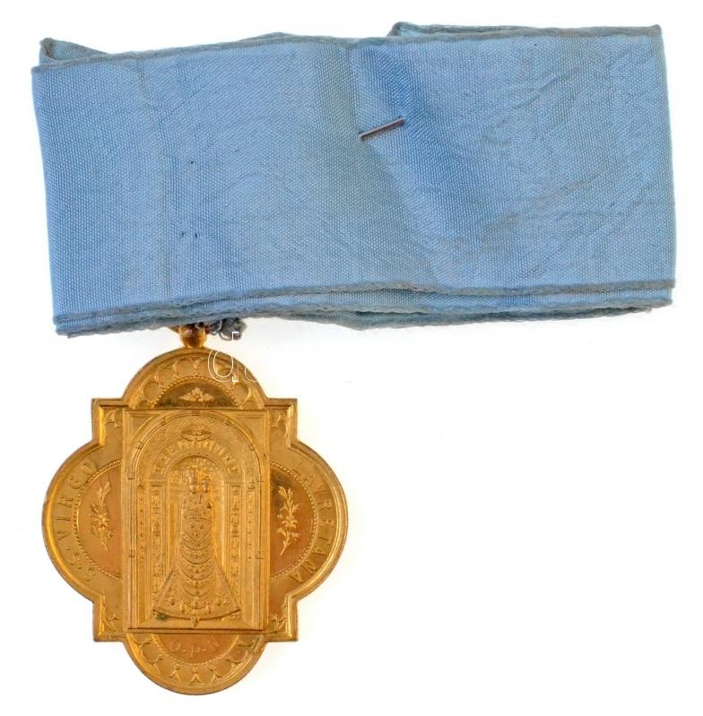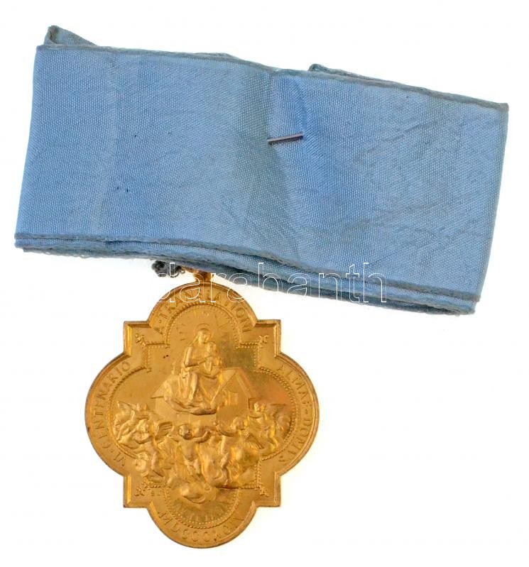 1894. "VI CENTENARIO TRASLATIONI ALMAE DOMUS" aranyozott fém, vallásos témájú medál, szalagon (35x44mm) T:2