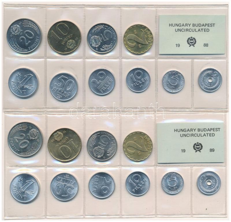 1984-1989. 2f-20Ft (10xklf) érmés forgalmi sor fóliatokban (5xklf) T:1...
