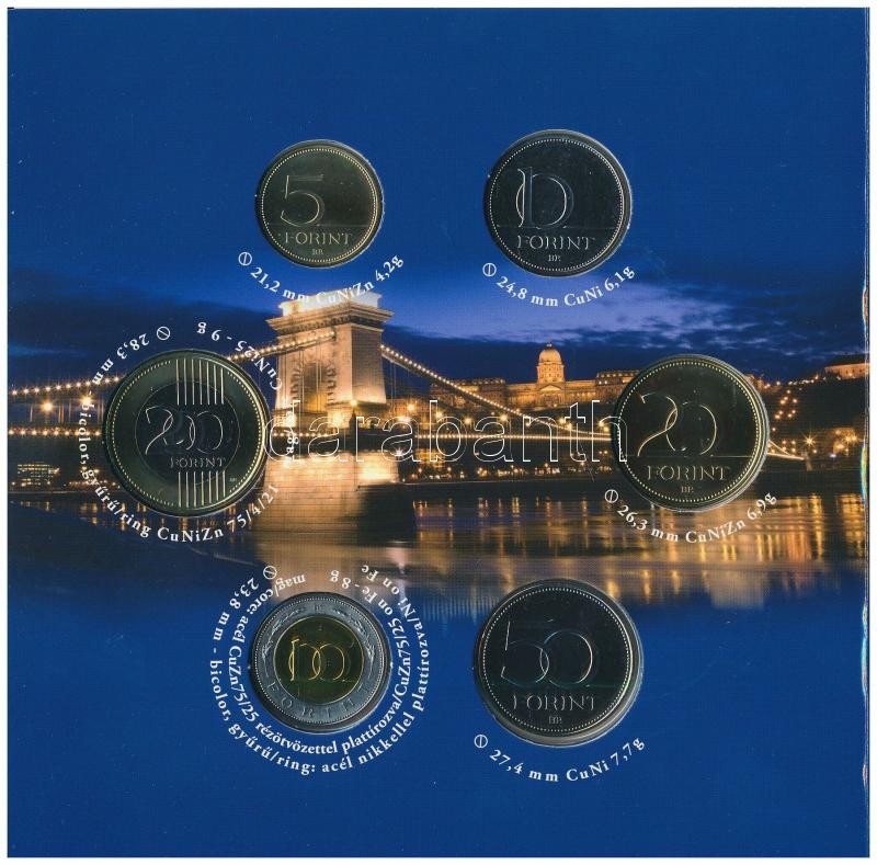 https://www.darabanth.com/en/359-Online-auction/359.0/Numismatics/Hungarian-coins-and-coins-with-Hungarian-mint-marks~2000008/2009-5Ft-200Ft-6xklf-Lanchid-forgalmi-sor-szettben-plus-2009-5Ft-200Ft-6xklf-Lanchid-forg~II2063773