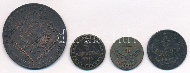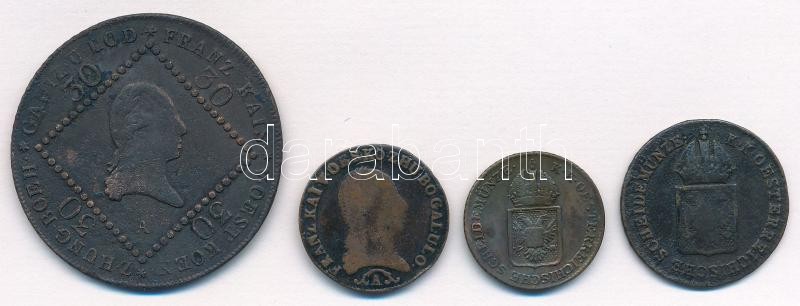 Description: Ausztria 1807A 30kr Cu + 1812A 1/2kr Cu + 1816A 1/4kr Cu + 1/2kr Cu T:2-,3
