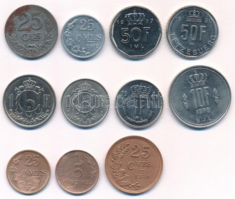 Luxemburg 1920-1990. 5c-50Fr (11xklf) közte 1920. 25c Fe T:1,2,2-
