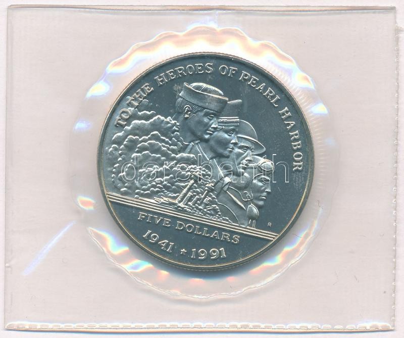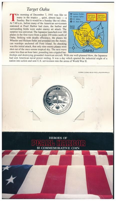 Description: Marshall-szigetek 1991. 5$ Cu-Ni "The heroes of Pearl Harbor" kartonlapon T:1