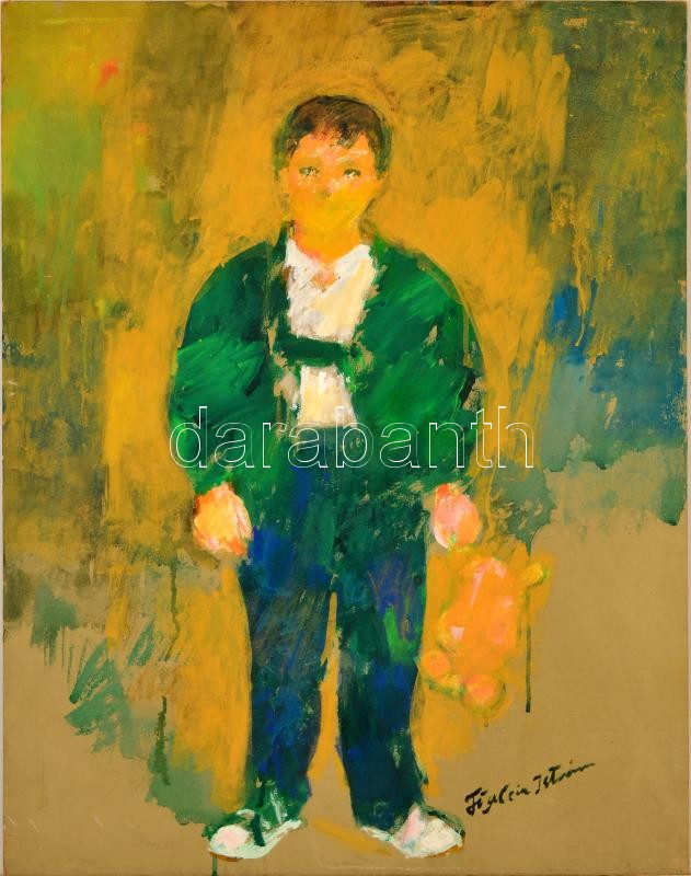Föglein jelzéssel: Fiú portré. Olaj, farost, 80×60 cm