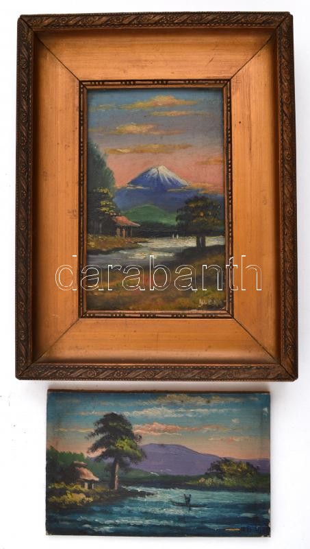 Ismeretlen alkotó: 2 darab tájkép, karton, egyik keretben, 14.5x9.5 cm x2