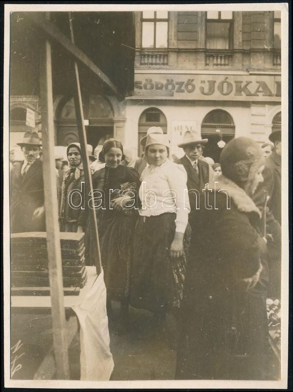 cca 1933 Kinszki Imre (1901-1945) budapesti fotóművész hagyatékából, jelzés nélküli, vintage fotó (Nézelődők a vásárban), 8,5x6,2 cm