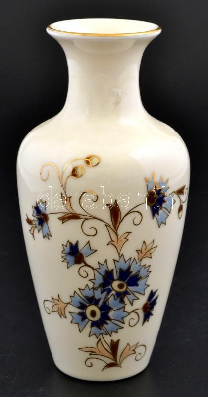 Zsolnay porcelán búzavirág mintás váza, kézzel festett, jelzett, hibát...