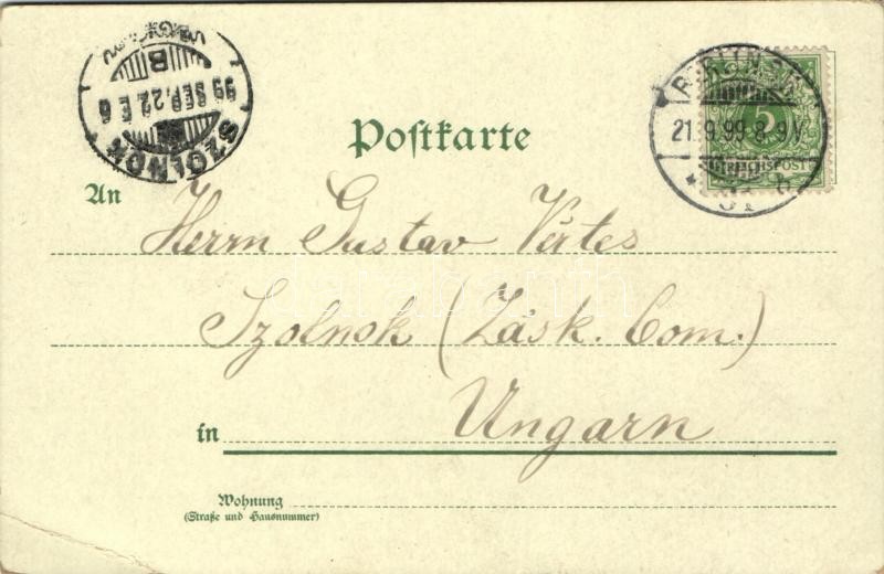 1899 Berlin, Königl. Schloss, Südseite mit Schlossbrunnen / castle, fountain, horse-drawn tram. W. Hagelberg Art Nouveau, litho (EK)