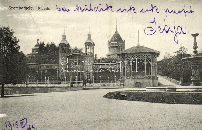 1915 Szombathely, Kioszk, szökőkút, étterem terasz. Kiadja Donáth Gyul...