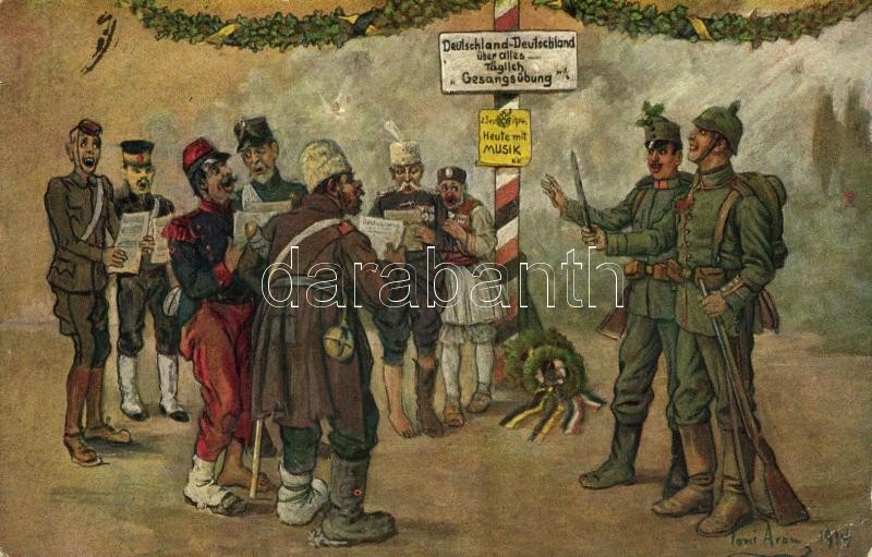 1915 Deutschland, Deutschland über alles - Täglich Gesangsübung / WWI German military porpaganda art postcard s: Toni Aron (EK)