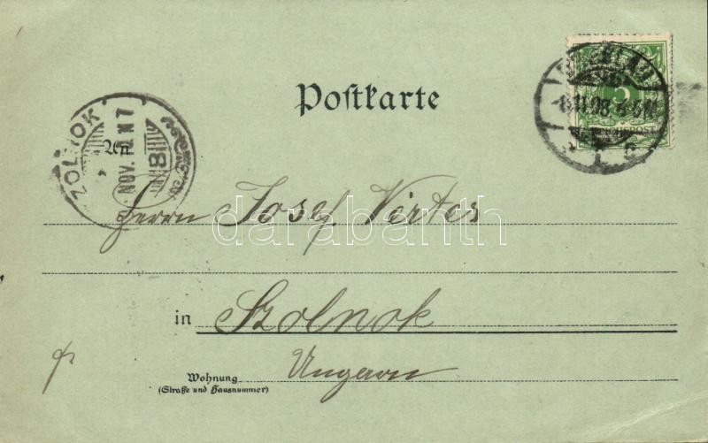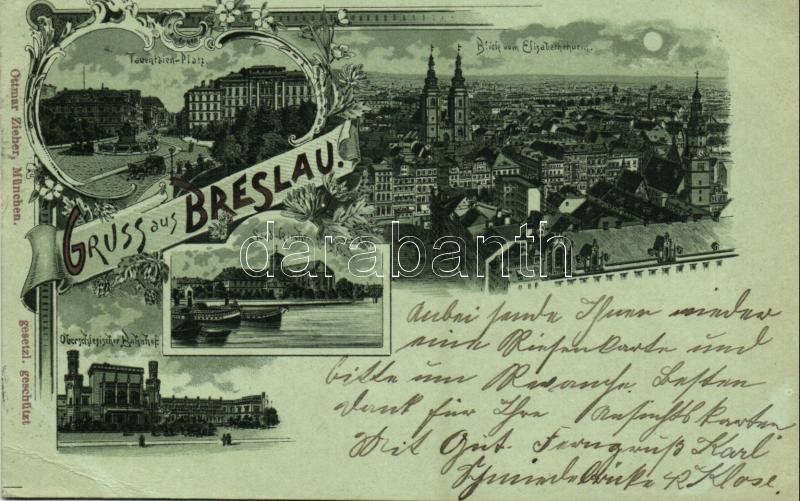 1898 Wroclaw, Breslau; Blick vom Elisabeththurm, Tauentzien-Platz, Oberschlesischer Bahnhof, Sand-Kirche / church, railway station. Ottmar Zieher Art Nouveau, floral, litho (EB)