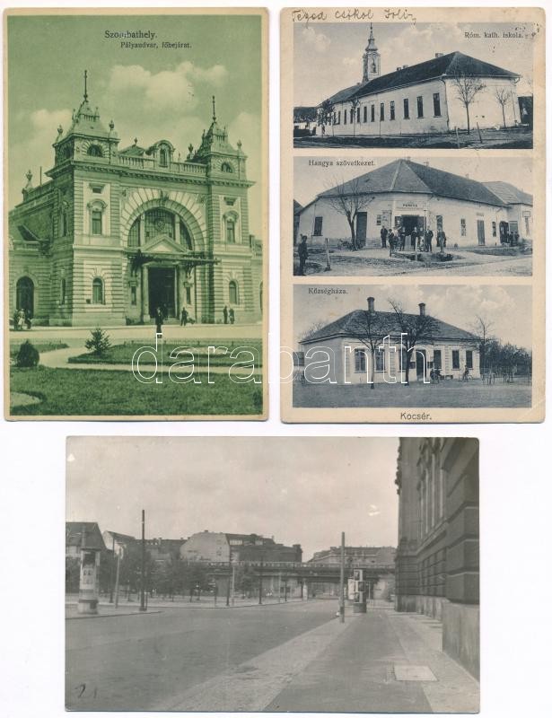 Description: 40 db főleg régi magyar és történelmi magyar városképes lap, közte néhány fotó; vegyes minőség / 40 mainly pre-1945 Hungarian and Historical Hungarian town-view postcards, including a few photos; mixed quality