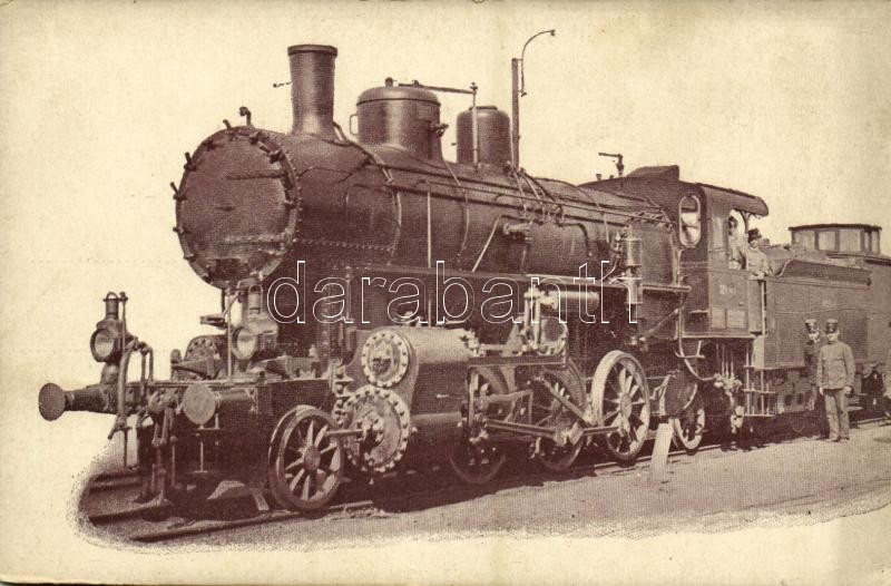 Description: A Magyar Királyi Államvasutak (MÁV) legújabb 324. sorozatú gyorstehervonatú mozdonya. Építette a "Magyar Királyi Államvasutak Gépgyára" Budapesten 1910. A "Gőzmozdony" kiadása / Hungarian State Railways locomotive, express freight train (EK)
