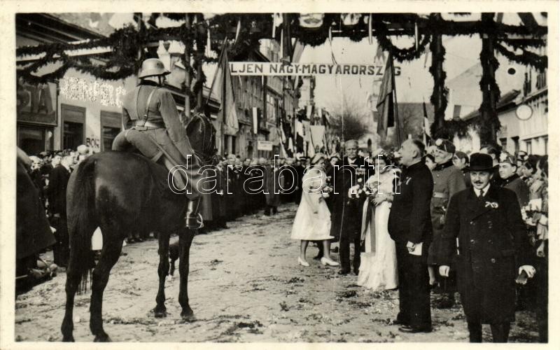 1938 Losonc, Lucenec; bevonulás, honleányok, "Éljen Nagy-Magyaror...