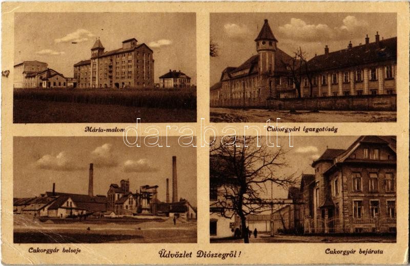 Diószeg, Sládkovicovo; Mária malom, Cukorgyári igazgatóság, Cukorgyár ...