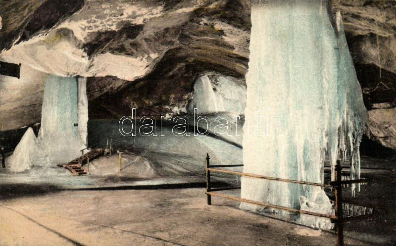 Dobsina, jégbarlang, Gotikus oltár és kút a nagyteremben / ice cave, interior