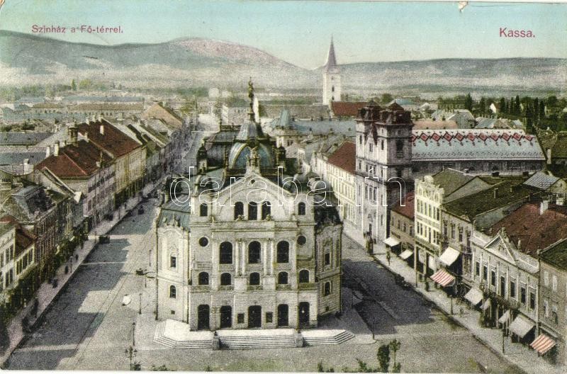 Kassa, Kosice; Színház a fő térrel, üzletek / theater, main square, shops (kis szakadás / small tear)