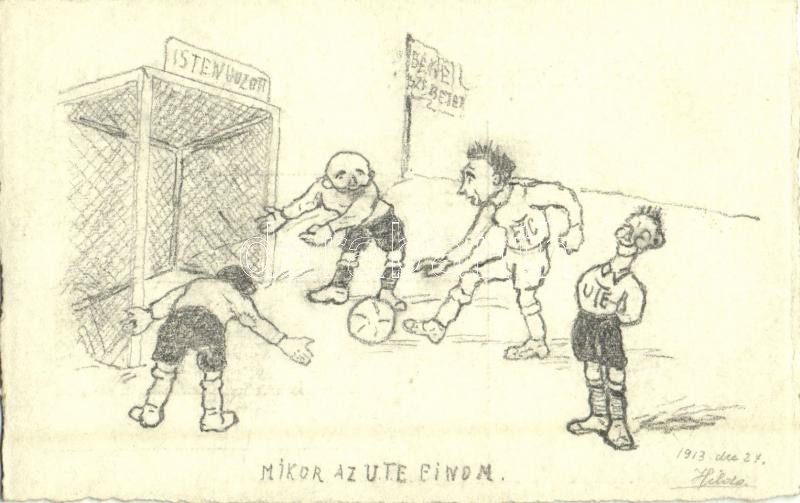 1913 Mikor az UTE finom. UTE és FTC labdarúgó (foci) meccs. Saját kézzel rajzolt / Hungarian football match. hand-drawn art s: Hilda