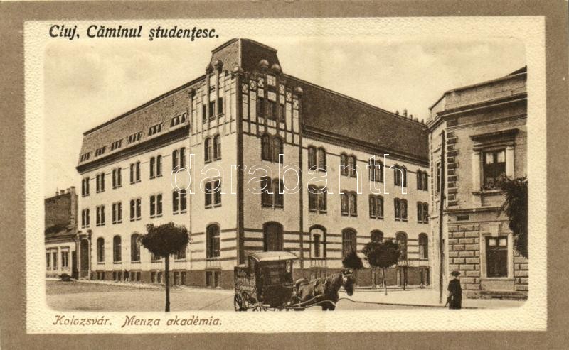 Kolozsvár, Cluj; Menza akadémia, lovaskocsi / academy, horse cart