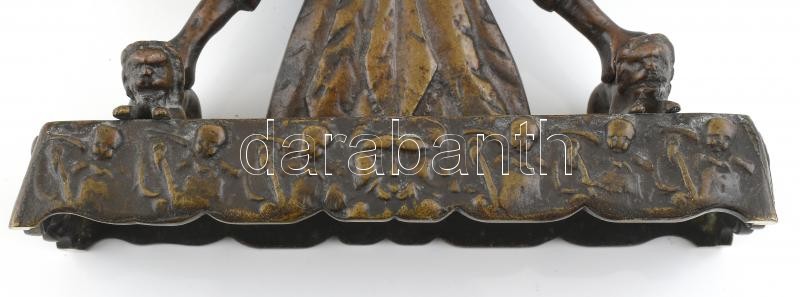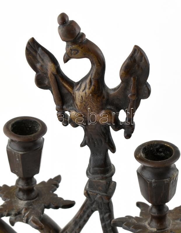 Szombati gyertyatartó pár. Judaika. Patinázott öntött bronz. Korának megfelelő állapotban. m: 42cm. A szombat gyertyájának meggyújtása. A zsidó hitben péntek este gyertyát gyújtanak a sábát, a pihenőnap bevezetéseként és áldást mondanak. Mindkettőn egy-egy császári sas látható - a Szent Római Birodalom jelképe, ami lengyelországi vagy poroszországi eredetre utal. XIX. század második fele.