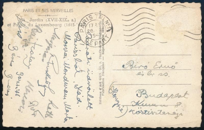Description: 1947 A Kispest labdarúgó csapat tagjai által aláírt képeslap Puskás, Bozsik, Budai, Mészáros az Arancsapat tagjai / Autograpph signatures of Hungarian football team members Kispest FC, later national team