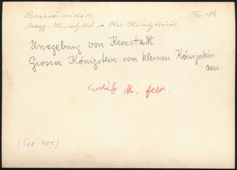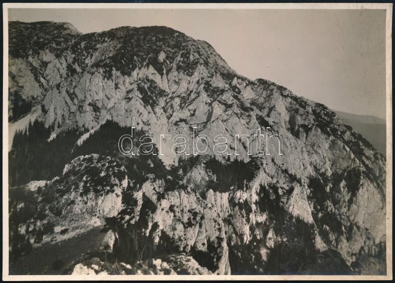 cca 1910-1920 Brassó vidéke, Nagy-Királykő a Kis-Királykőről, Erdélyi Mór (1866-1934) felvétele, hátoldalán feliratozott fotó, 16x11,5 cm / Brasov (Kronstadt), Piatra Craiului, mountains, vintage photo by Mór Erdélyi, 16x11,5 cm