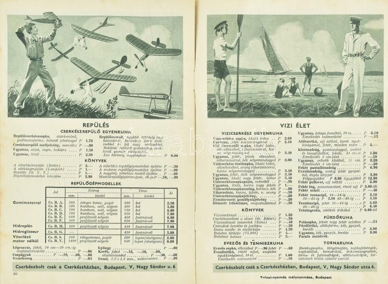 1936 Cserkészbolt felszerelés, árjegyzék