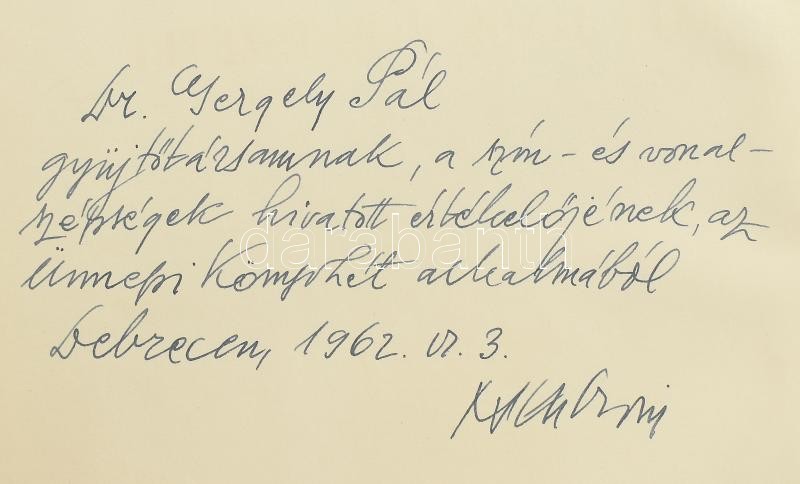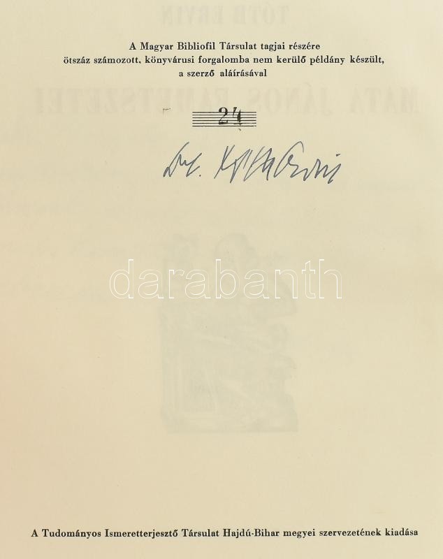 Számozott (25./500) példány, a szerzÅ‘, Tóth Ervin (1910-1999) által aláÃrt és dedikált példány.