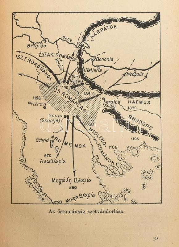 Gáldi László-Makkai László: A románok története-különös tekintettel az erdélyi románokra - A Magyar Történelmi Társulat kiadása 9 térképpel és 20 képmelléklettel.A Magyar Történelmi Társulat könyvei VI. [Bp., 1941], Magyar Történelmi Társulat, (Franklin-ny.), 428 p., 7 (fekete-fehér képtáblákkal) t.+ 1 (kihajtható térkép) t. Az oldalszámozáson belül szövegközti és egészoldalas térképekkel illusztrált. Kiadói félvászon-kötés, kissé kopott borítóval, kissé laza kötéssel, de alapvetően jó állapotban.