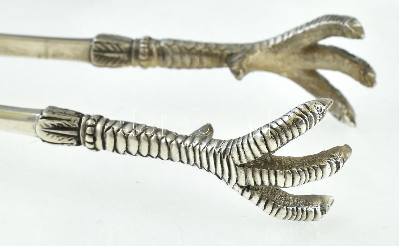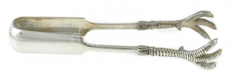Ezüst (Ag) Orosz cukorcsipesz stilizált sasláb végződéssel. Jelzett: Szentpétervár, 1896. Jó állapotú. nettó: 70,5 g, h: 15 cm