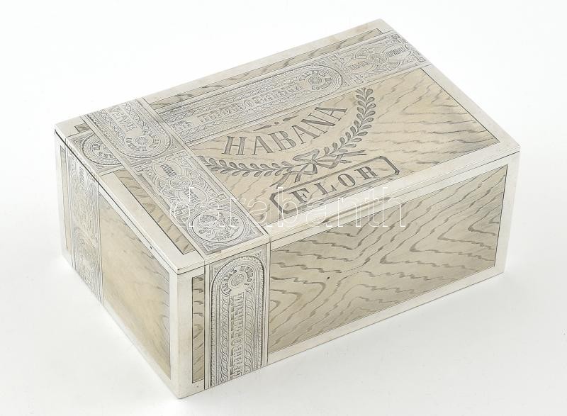 Ezüst (Ag) Szivardoboz, Habana vésett felirattal, jelzett: orosz 1891,...