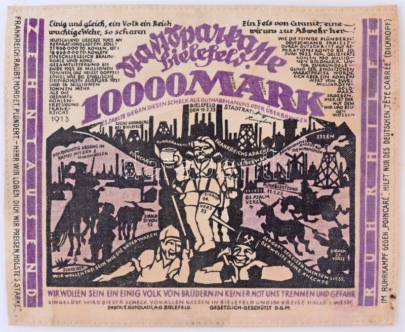 Németország / Weimari Köztársaság / Bielefeld / 1923. 10.000M vászon, ...