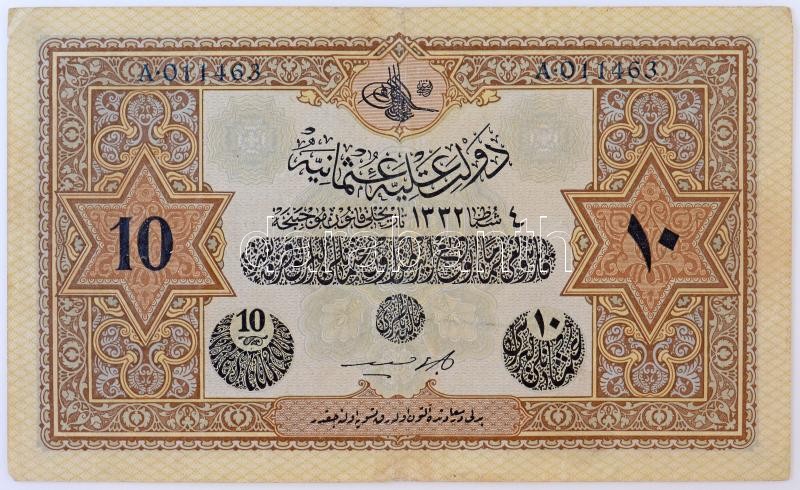 Törökország 1914. 10L "A 011463" T:III / Turkey 1914. 10 Livre "A 011463" C:F