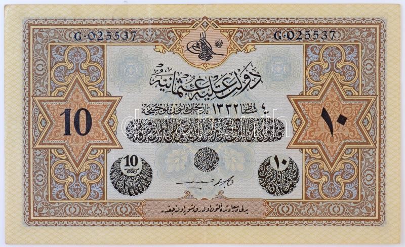 Törökország 1914. 10L "G 025537 T:II- / Turkey 1914. 10 Livre "G 025537" C:VF