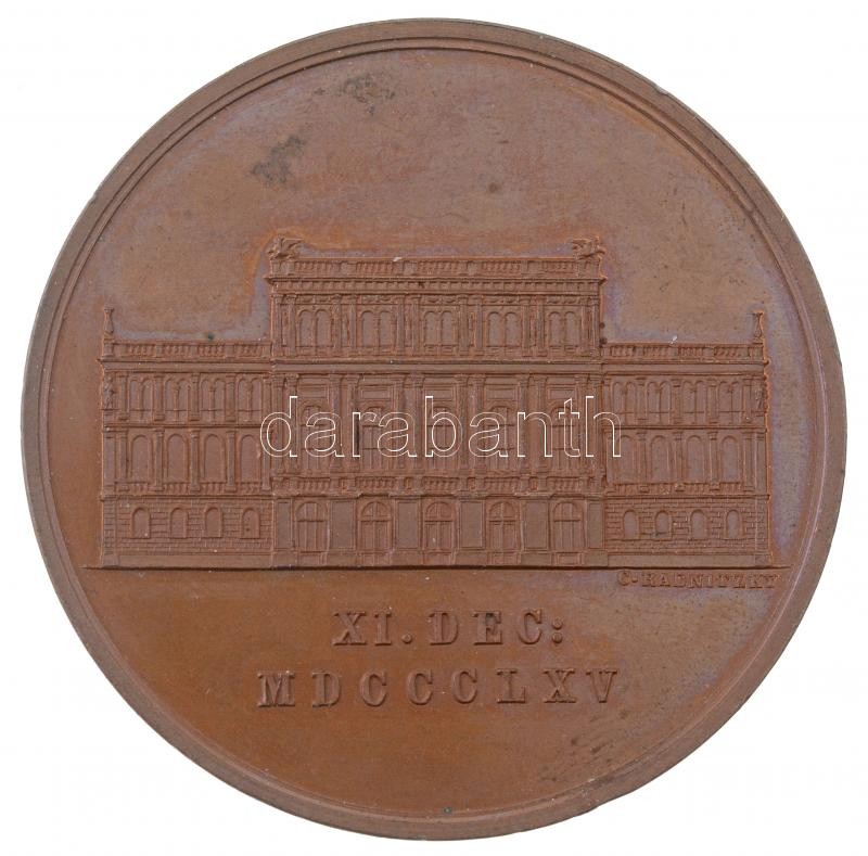 Carl Radnitzky (1818-1901) 1865. "A Magyar Tudományos Akadémia megnyitásának 40. évfordulójára" Br emlékérem. "XI. DEC: MDCCCLXV / HÁZA MEGNYITÁSÁNAK EMLÉKEÜL A MAGYAR TUDOM: AKADÉMIA" (53,91g/51mm) T:1-,2 apró ph-k / Hungary 1865. "40th anniversary of the opening of the Hungarian Academy of Sciences" two-sided Br medallion. Sign.: Carl Radnitzky (53,91g/51mm) C:AU,XF small edge errors