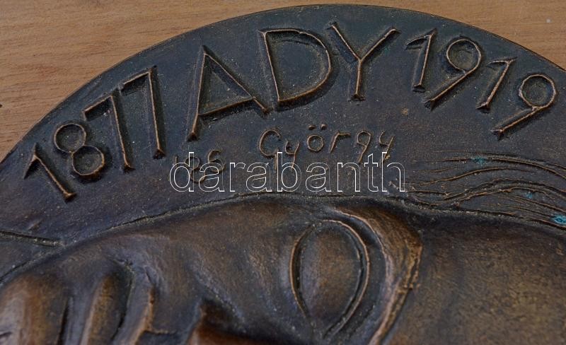 Description: György Albert (1949-) 1986. "Ady 1877-1919 / Ifjú szívekben élek s mindig tovább" Br emlékplakett fa talpon. (145mm) T:1- / Hungary 1986. "Ady 1877-1919 / Ifjú szívekben élek s mindig tovább" Br commemorative plaque on wooden base (145mm) C:AU