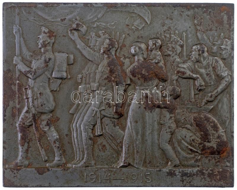 Telcs Ede (1872-1948) 1915. "Hadbavonulók 1914-1915" egyoldalas Fe plakett, Éremkedvelők Egyesületének tagsági érme, peremén "ÉKE 1915", sorszámozott, 11-es sorszámmal (151,74g/65x82mm) T:2 rozsda / Hungary 1915. "Hadbavonulók 1914-1915" one-sided Fe plaque, membership medal of the Association of Medal Enthusiasts, with "ÉKE 1915" and serial number "11" on edge Sign: Ede Telcs (151,74g/65x82mm) C:XF rust
