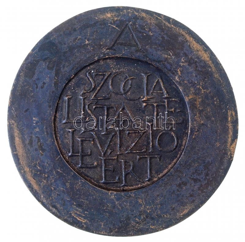 Vígh Tamás (1926-) 1986. "A Szocialista Televízióért" kétoldalas öntött Br érdemérem (570g/92mm) T:1- / Hungary 1986. "For the Socialist Television" two-sided cast Br prize medallion. Sign: Tamás Vígh (570g/92mm) C:AU