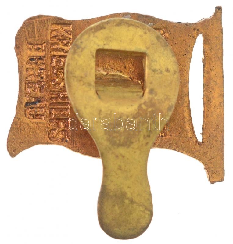 Austro-Hungarian Monarchy ~1914-1918. Enamelled, gilt bronze Austrian, German, Hungarian flag patriotic badge with makers mark "GES GESCH KIEGSHILFS BUREAU" on the back (19x23mm) C:XF