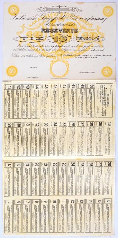 https://www.darabanth.com/en/36-Major-auction/36.1/Numismatics/Shares-Securities-and-Tickets~15171/Hodmezovasarhely-1926-Kakasszeki-Gyogyfurdo-Reszvenytarsasag-reszvenye-10P-rol-so~II2488895