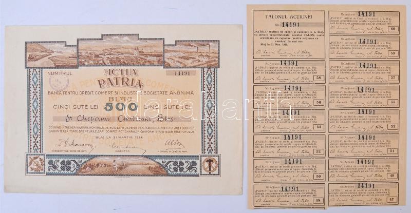 Románia / Blaj (Balázsfalva) 1927. "Banca Pentru Credit Comert si... https://www.darabanth.com/en/36-Major-auction/36.1/Numismatics/Shares-Securities-and-Tickets~15171/Romania-Blaj-Balazsfalva-1927-Banca-Pentru-Credit-Comert-si-Industrie-Societate-Anonima-ne~II2489329