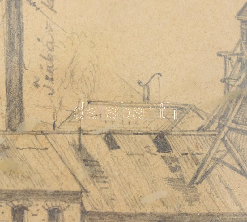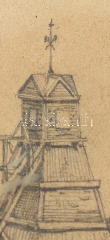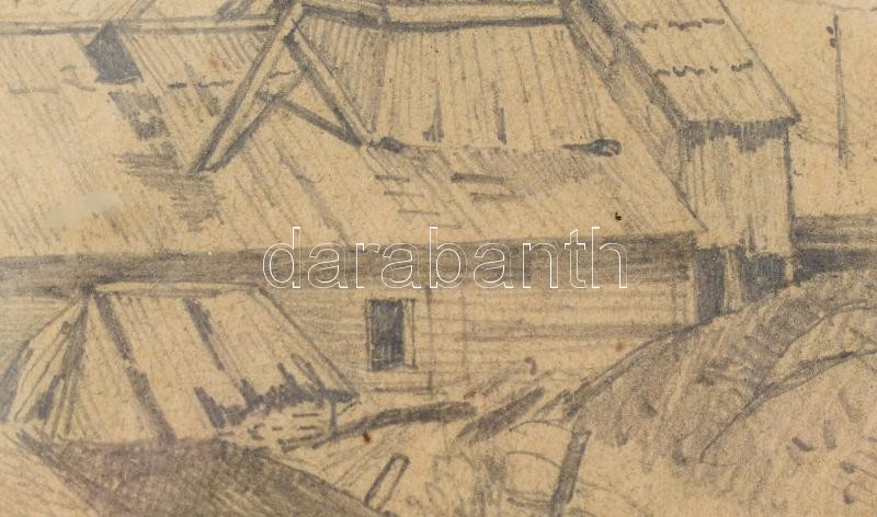 Description: Báró Mednyánszky László (1852-1919): Gyár látképe. Ceruza, papír. Jelezve jobbra lent. Üvegezett fa keretben. 9,5x15,5 cm / László Mednyánszky, Ladislav Medňanský (1852-1919): Panorama of a factory. Pencil on paper. Signed lower right. Framed. 9,5x15,5 cm