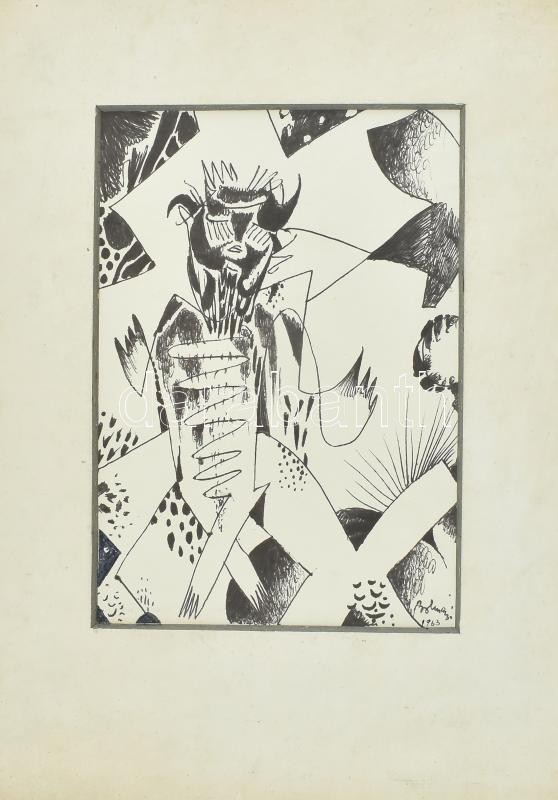 Tus, toll, papír, jelzett... https://www.darabanth.com/en/36-Major-auction/36.1/Paintings-and-graphics/Paintings-and-graphics~15518/Bolmanyi-Ferenc-1904-1990-Memento-1963-Tus-toll-papir-jelzett-Hatoldalan-feliratozott~II2489447