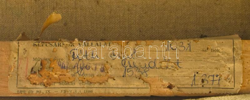 Description: Fóth Ernő (1934-2009): Dinnyés csendélet, 1960-as évek. Olaj, vászon. Jelzett. A hátoldalán autográf felirattal és Képcsarnok Vállalat sérült címkéjével. Fa keretben. 50×70 cm