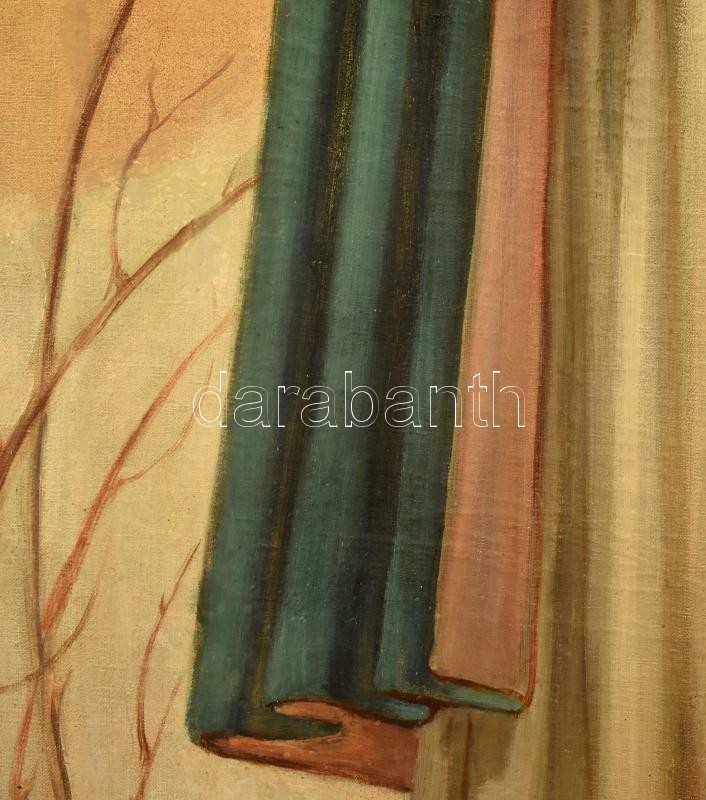 Description: Hubay-Cebrián Andor (1898-1971): Patrona Hungariae. Olaj, vászon, jelzett a hátoldalán. Javított. Dekoratív fa keretben, 142×67 cm / Oil on canvas, signed on the reverse. Canvas repaired. Framed.