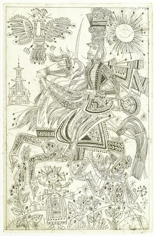 Kass János (1927 - 2010): Háry János. Rézkarc, papír. Jelzett, szárazpecséttel is. 17x11 cm